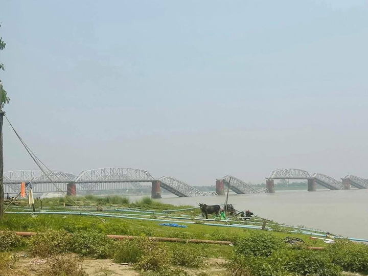 Die Fahrt nach Bagan ist eigentlich unspektakulär, der Fluß ist breit, viele Sandbänke und flaches Land. Gegen 16:00 kamen wir dann in Bagan an, 10 Stunden Fahrt. Auch hier legen die Schiffe an einer unbefestigten Uferböschung an, es gibt keine Kaimauern oder Stege. Bei der Einschiffung brauchte ich noch Hilfe von den einheimischen Jungs, die mir über das schmale Brett an Bord halfen. Beim Anlegen in Bagan schaffe ich es auch wieder alleine, es ist ja auch hell. Trocken und sandig ist es hier.
