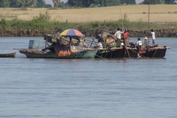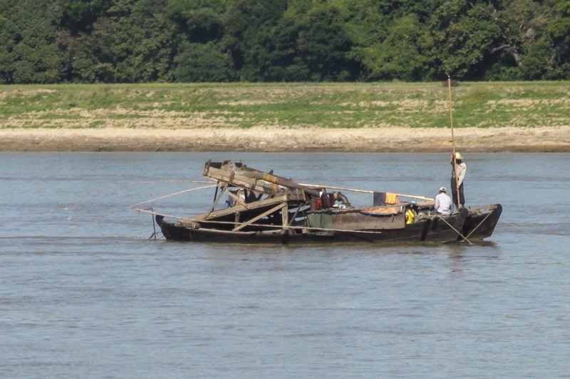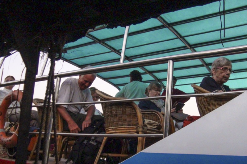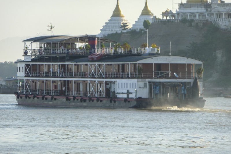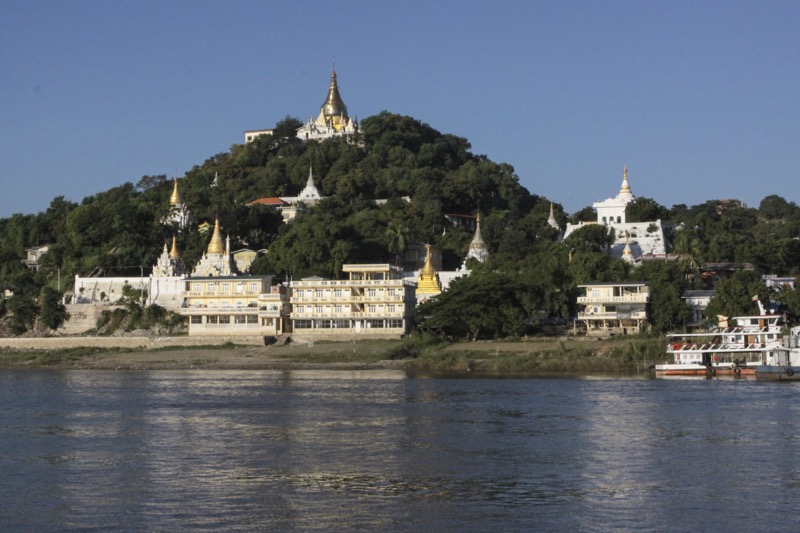 Die Fahrt nach Bagan ist eigentlich unspektakulär, der Fluß ist breit, viele Sandbänke und flaches Land. Gegen 16:00 kamen wir dann in Bagan an, 10 Stunden Fahrt. Auch hier legen die Schiffe an einer unbefestigten Uferböschung an, es gibt keine Kaimauern oder Stege. Bei der Einschiffung brauchte ich noch Hilfe von den einheimischen Jungs, die mir über das schmale Brett an Bord halfen. Beim Anlegen in Bagan schaffe ich es auch wieder alleine, es ist ja auch hell. Trocken und sandig ist es hier.